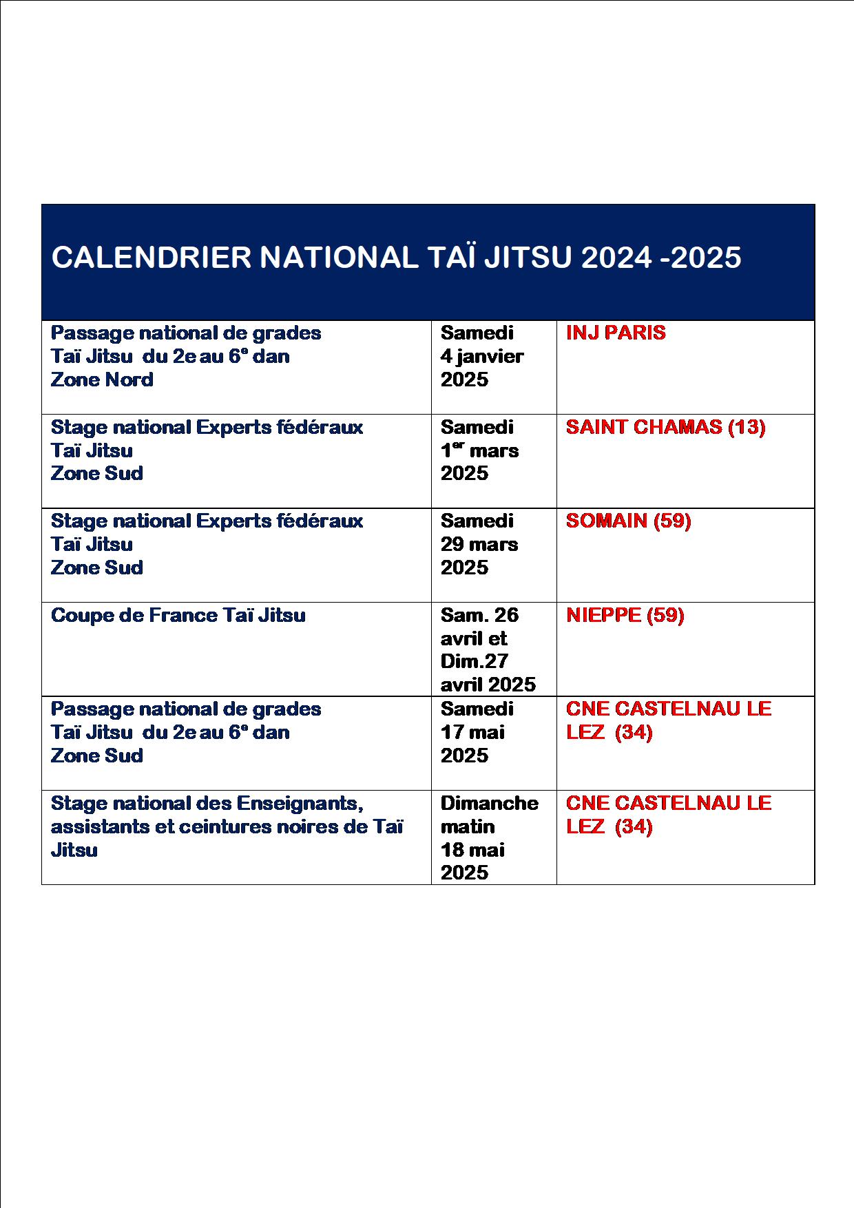 Calendrier National Taï-jitsu - FFK 2024-2025
