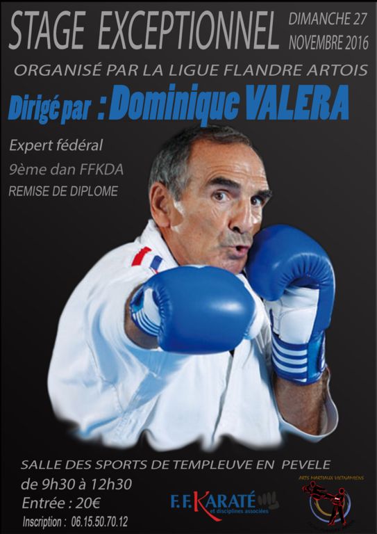 viendra à Templeuve le dimanche 27 novembre 2016 pour dirigé un stage organisé par la Ligue Flandres Artois de Karaté et Disciplines Associés (voir affiche).