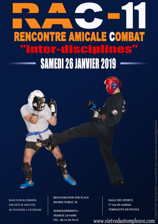 Pour les interéssés , la 11ème rencontre amicale combat aura lieu le Samedi 26 janvier 2019! Toujours à Templeuve, voir affiche.