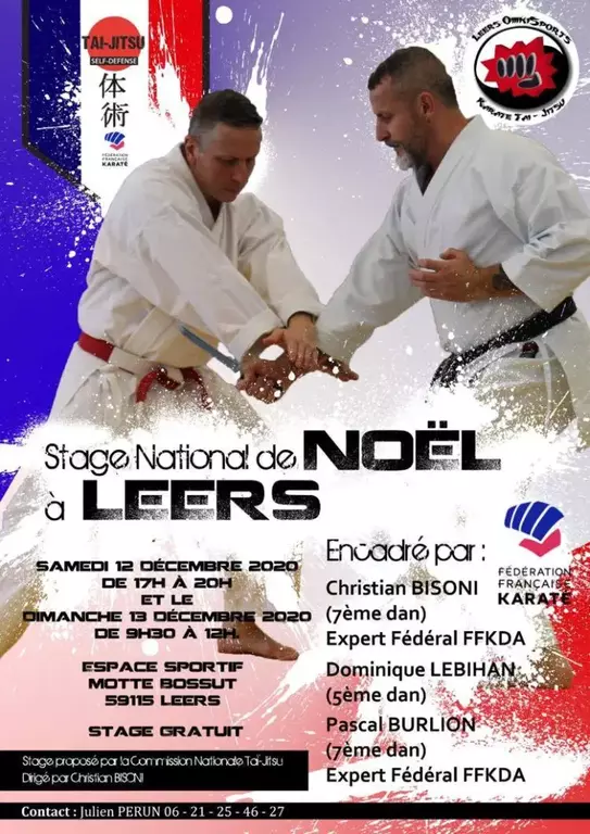 Nouveau ! Sauf imprévu, Stage de Taï-jitsu à LEERS le 12 & 13 décembre 2020 (voir affiche)